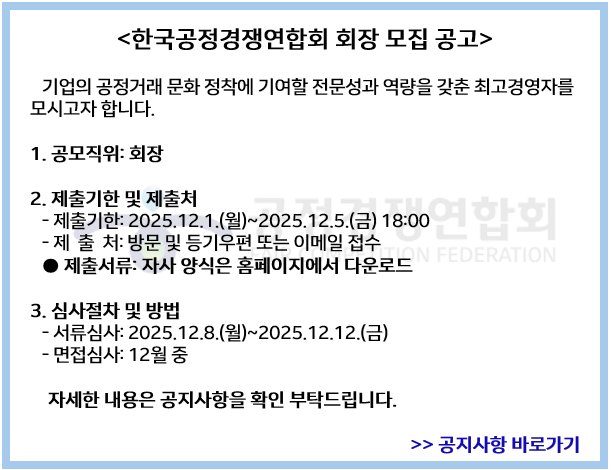 최신 공정거래법·제도·정책·집행 관련 소식들을 확인하세요.