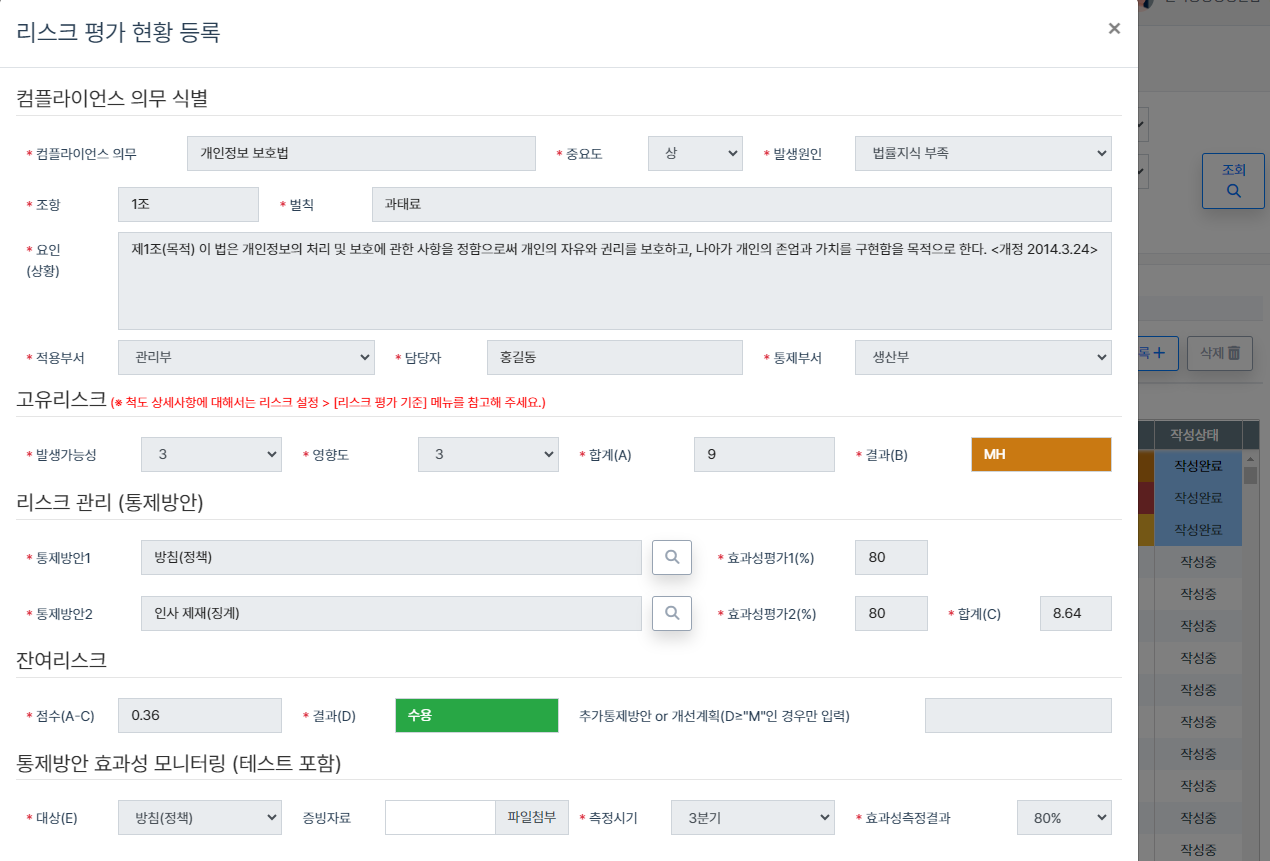 전사 차원의 관리 방안 및 법령별 관리방안을 설정, 등록할 수 있다.